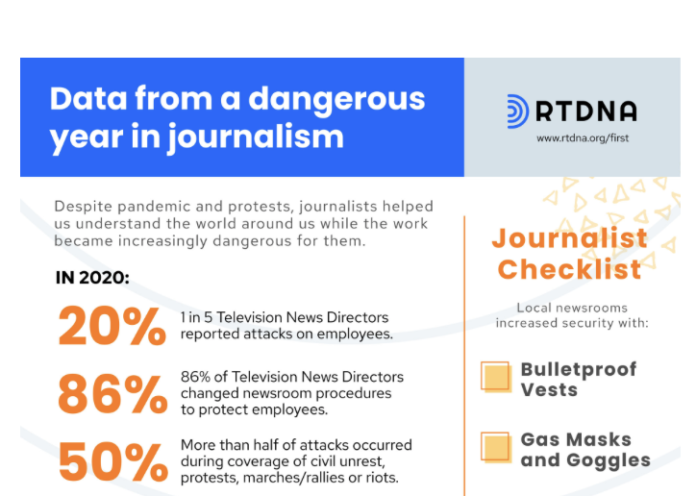 A new report from the RTDNA says attacks on journalists in the United States were up last year. Most of the attacks were associated with reporters and photographers covering protests related to race relations and police violence.