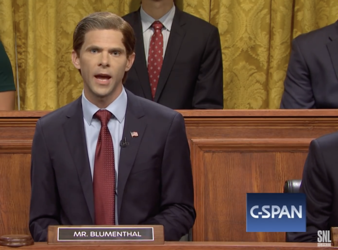 A Senator Richard Blumenthal, played by Mikey Day, led the cold open for this weekend’s Saturday Night Live.