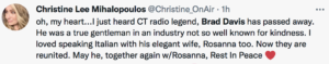 As we reported when the news first broke, Davis, a former U.S. Marine, was recruited from Chicopee, Massachusetts for his first job in Connecticut at what was then WTIC-TV, channel 3, in Hartford. There he hosted a variety show and later public affairs shows including a co-anchored program along with John Sablon.