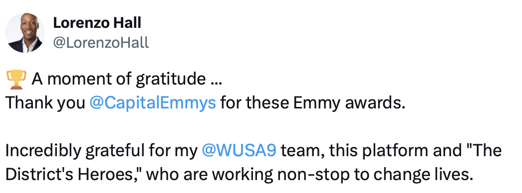 Hall Wins D.C. Emmy